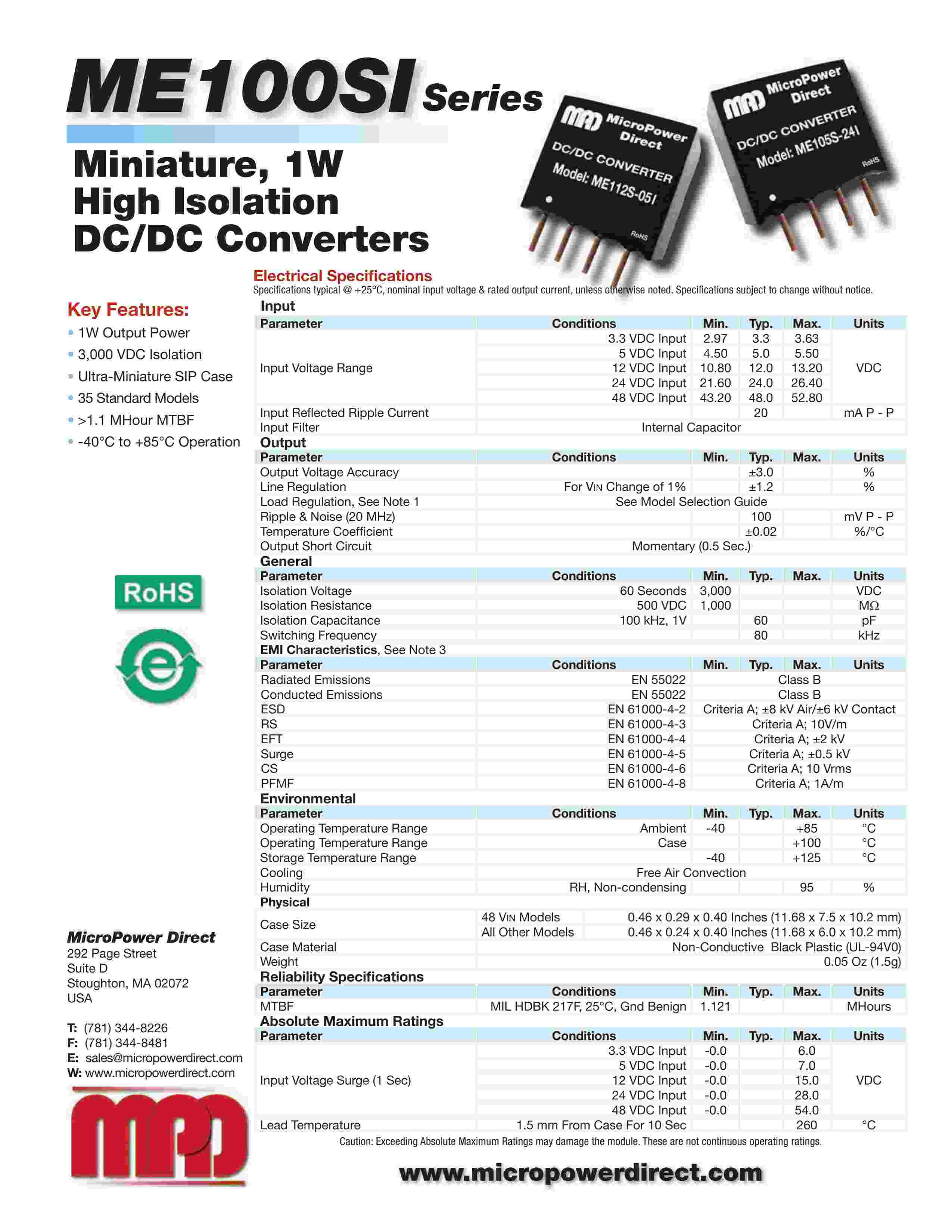 Low Cost, 1W Ultra-Miniature SIP DC/DC Con vert ers
