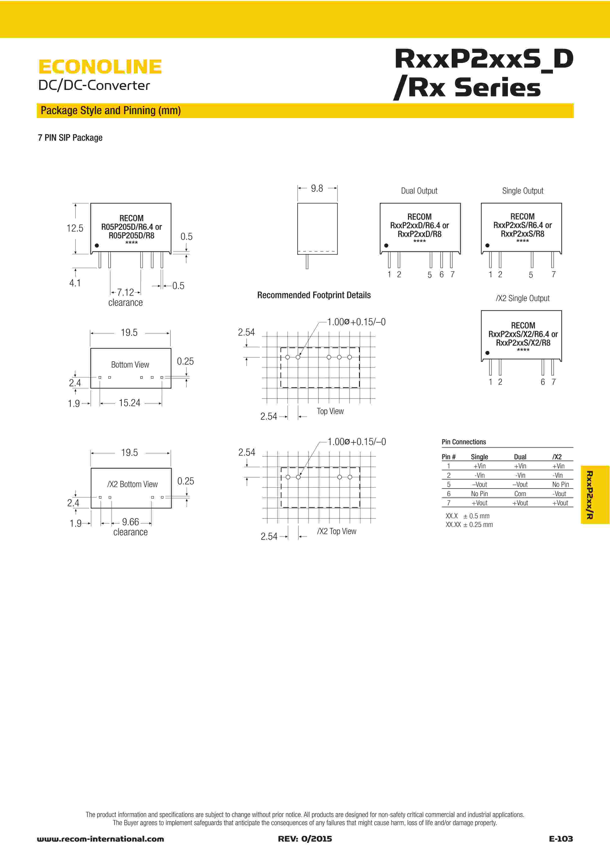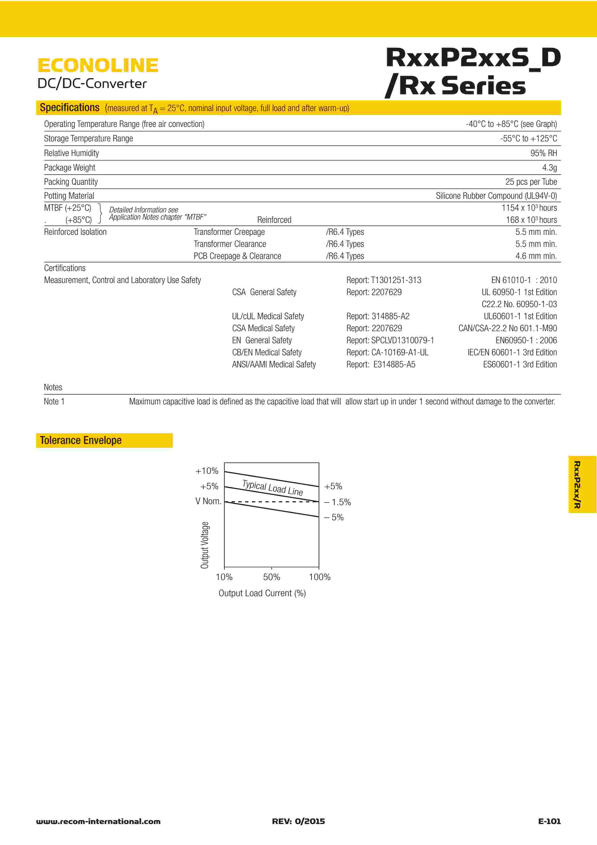 | 描 述: | ● UL/CSA and EN Safety certified● EN-61010 for Test, Measurement and Lab Use● EN-60601 for Medical Applications● Reinforced Isolation 6.4kVDC or 8kVDC● Optional Continuous Short Circuit Protected● Compact SIP7 Package● Efficiency to 88%● Very Low Isolation Capacitance● /X2 Version with >9mm Input/Output Clearance | ||