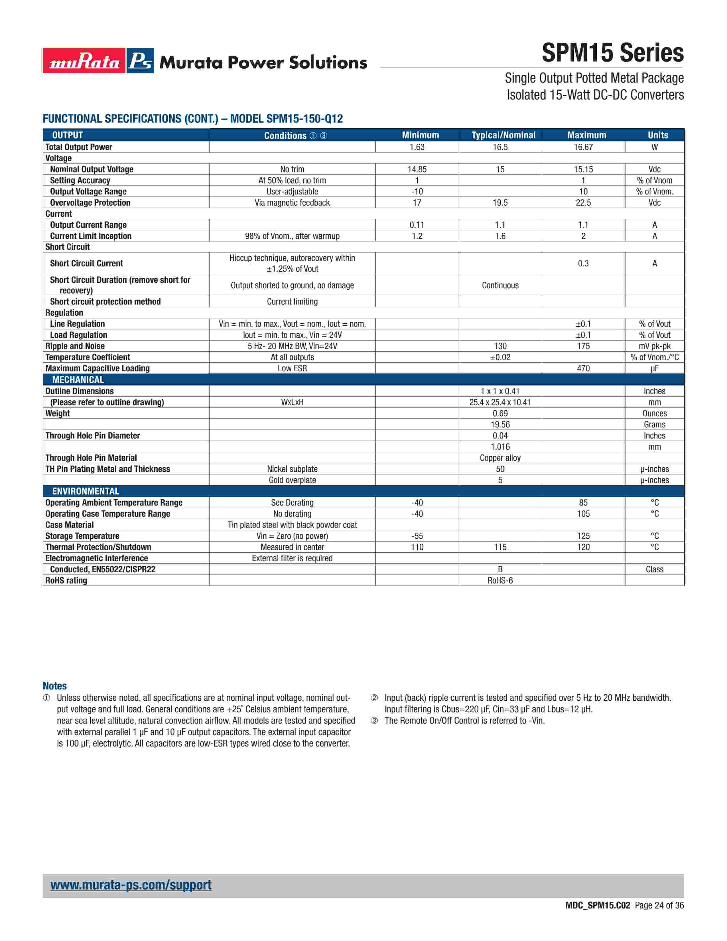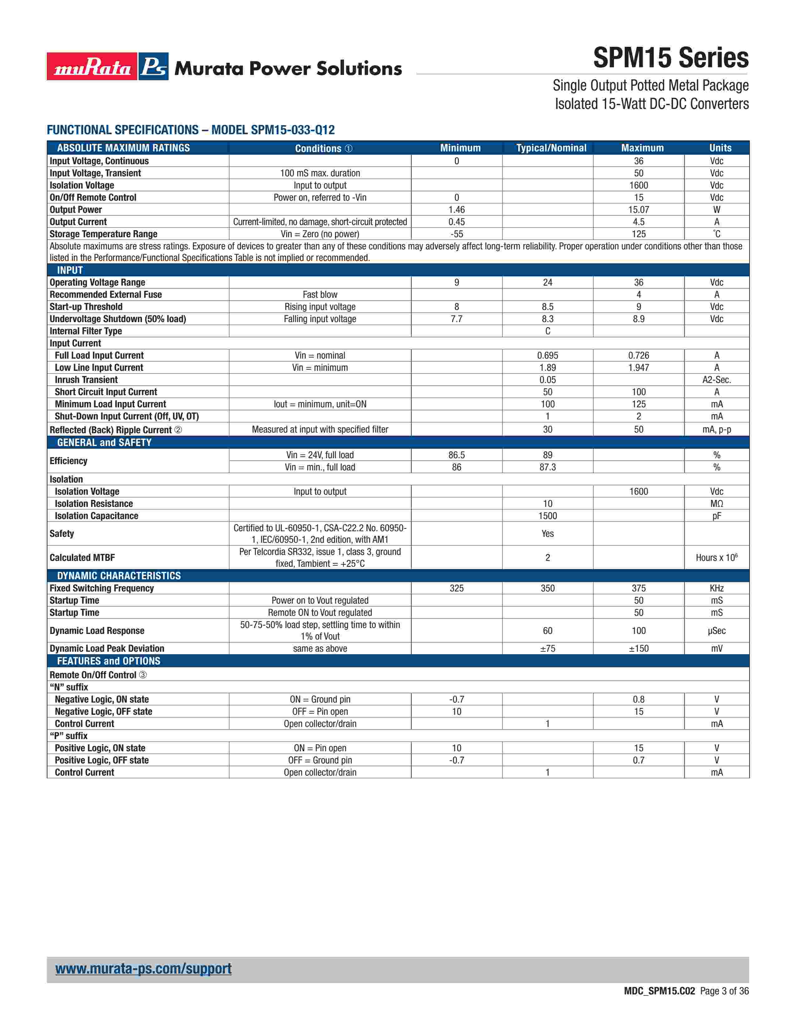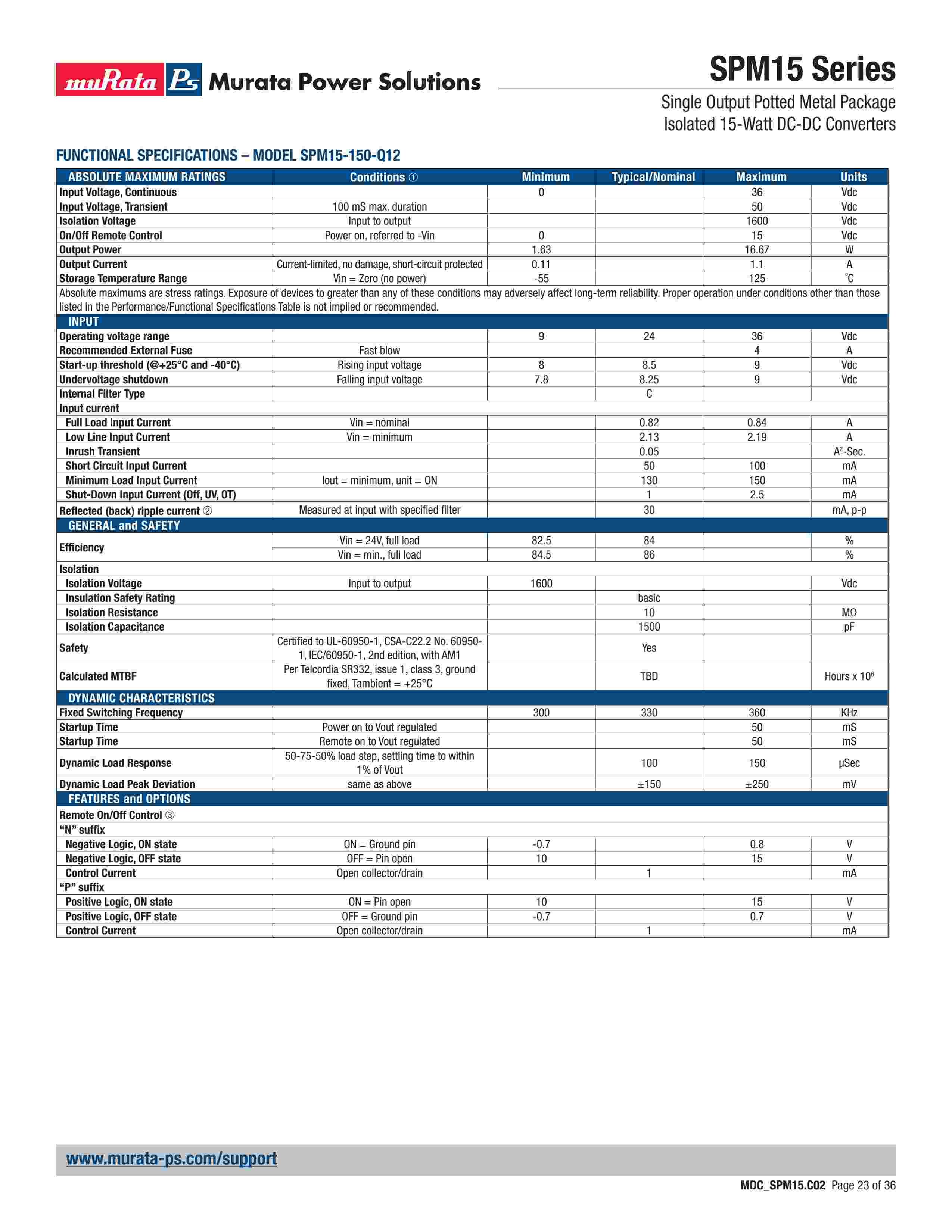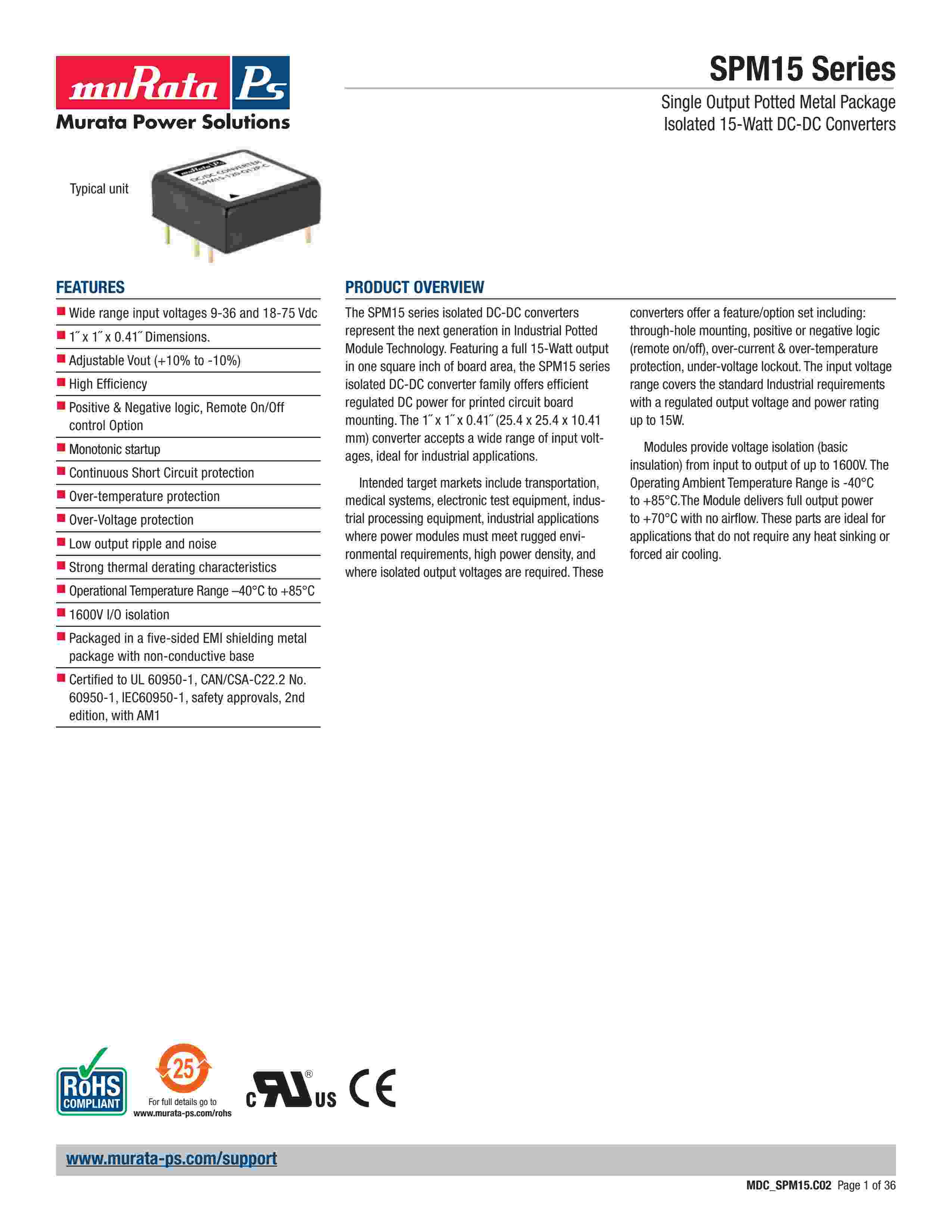 Single Output Potted Metal Package Isolated 15-Watt DC-DC Converters
