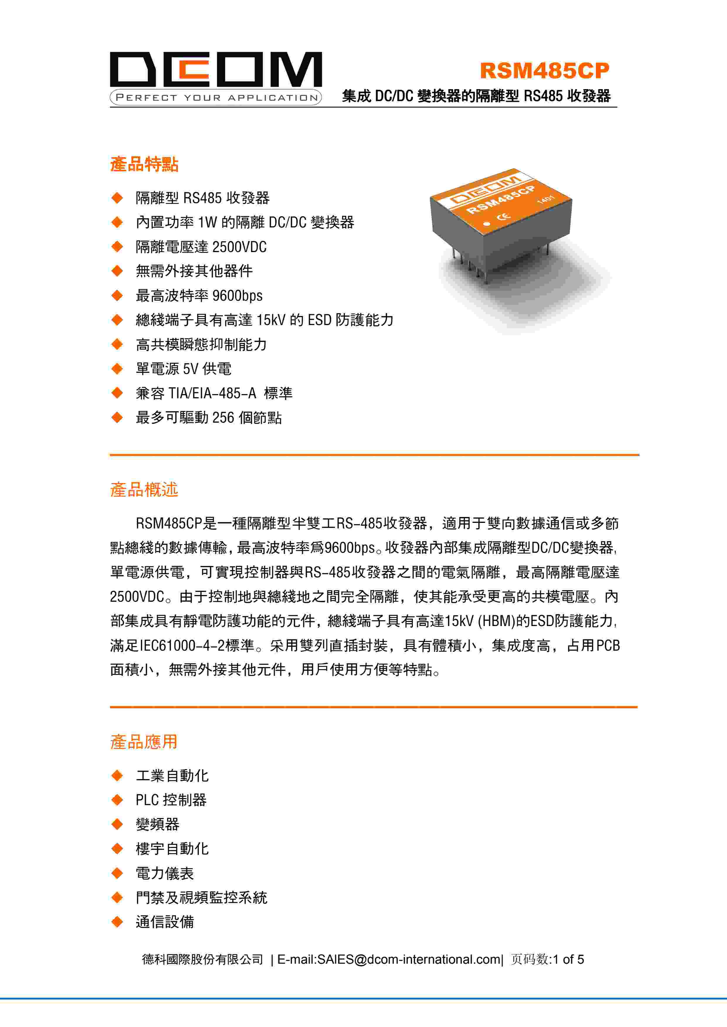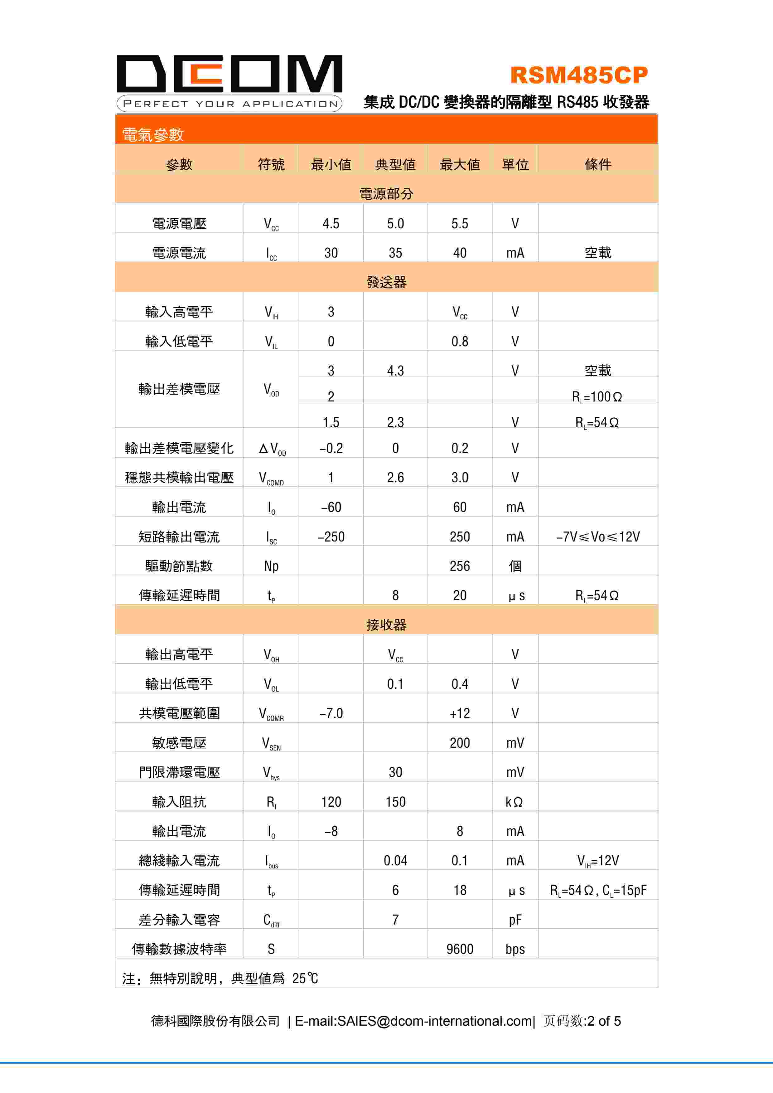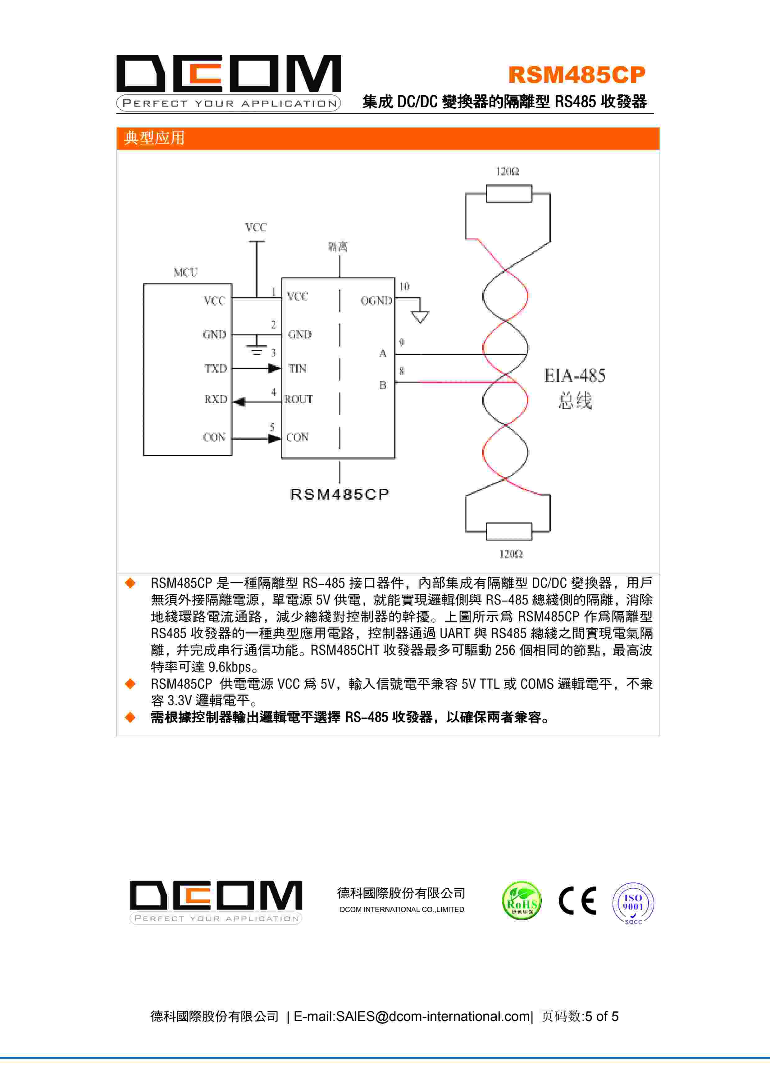 集成 DC/DC 变换器的隔离型 RS485 收发器