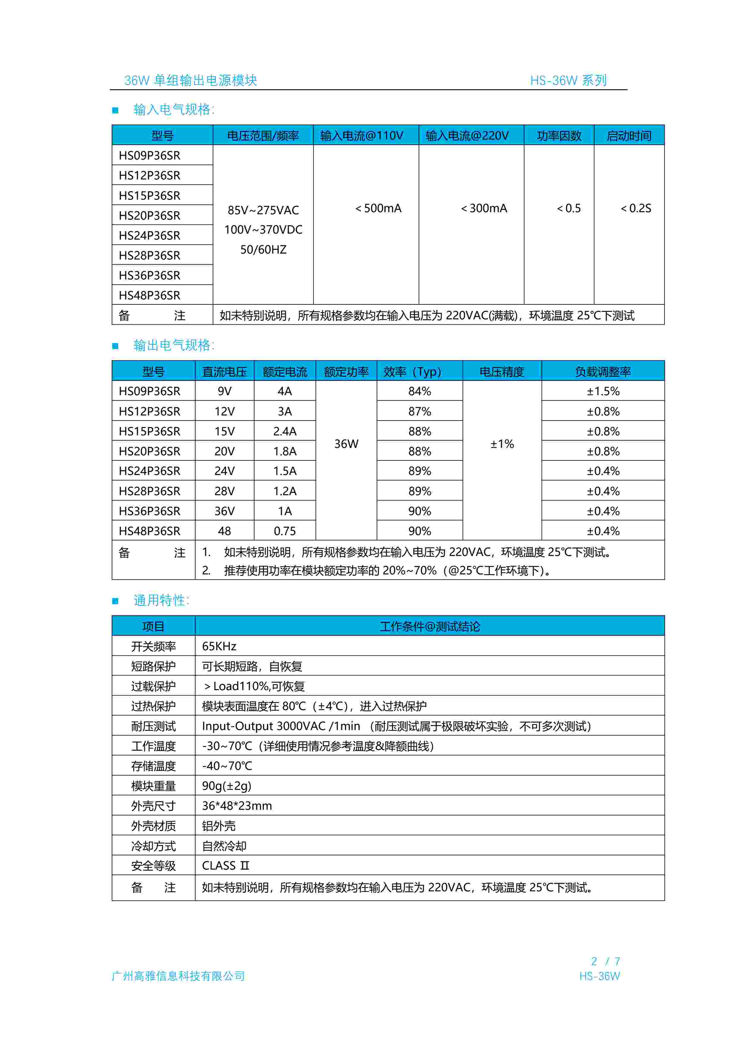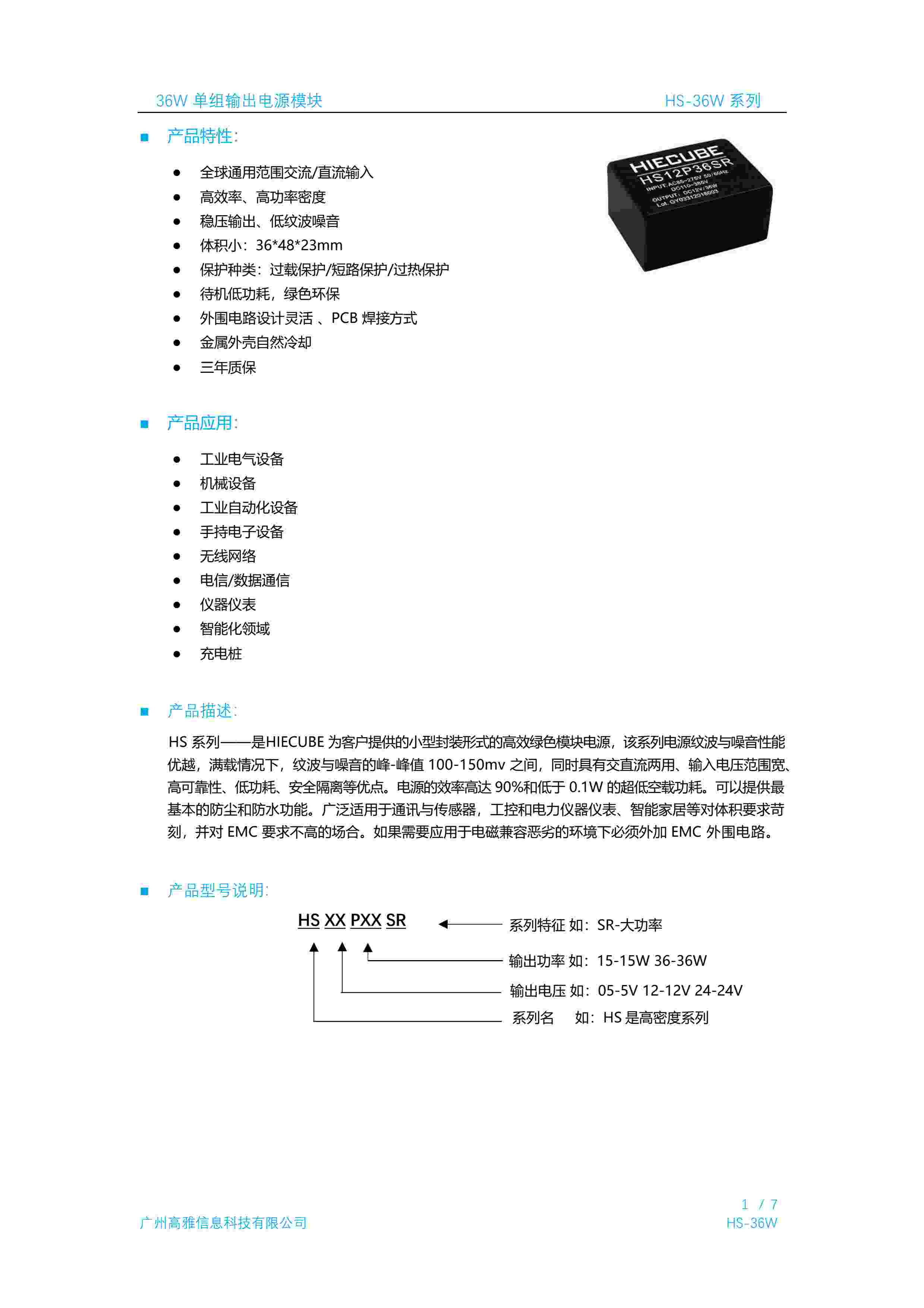 36W 单组输出电源模块
