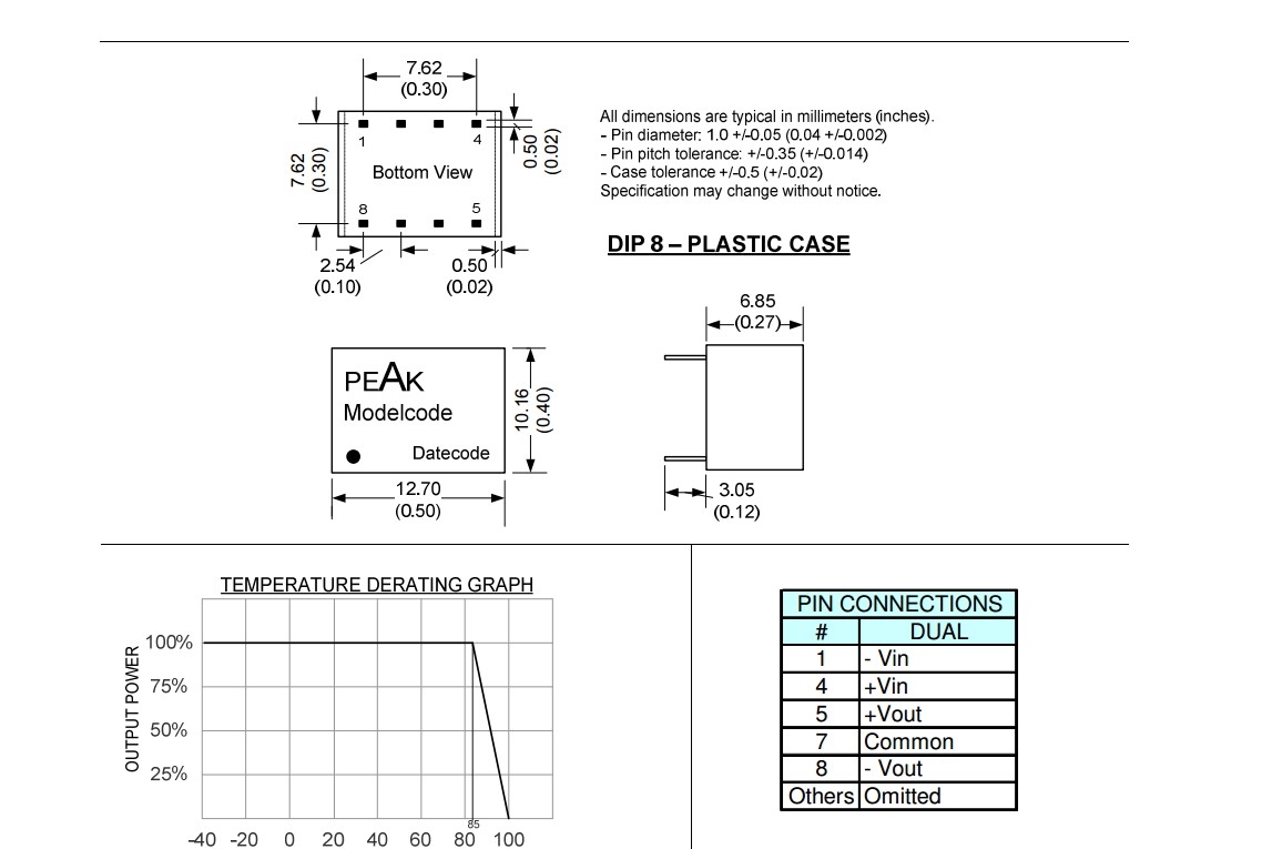 | 输出电压 | ±3.3VDC | 效率 | 71 % |