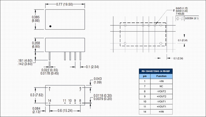| 输出功率 | 1W | 短路保护 | 1second(-suffix"P" continous) |