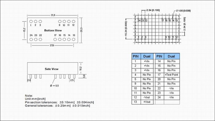 | 输出功率 | 1.5W | 短路保护 | 1second(-suffix"P" continous) |