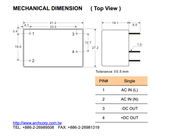 | 封装尺寸 | 41.2x27.2x19.1mm | 认证 | RoHS,CE |