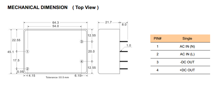 | 封装尺寸 | 64.0x45.0x21.5mm | 认证 | RoHS,CE |