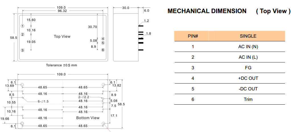 | 封装尺寸 | 109.0x58.5x30.0mm | 认证 | RoHS,CE |